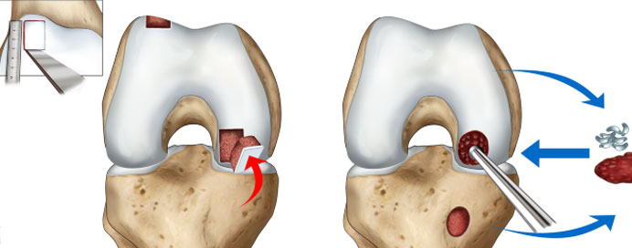 Cartilage Harvesting – A cylindrical bone-cartilage plug is taken from a healthy, non-weight-bearing area of the knee.