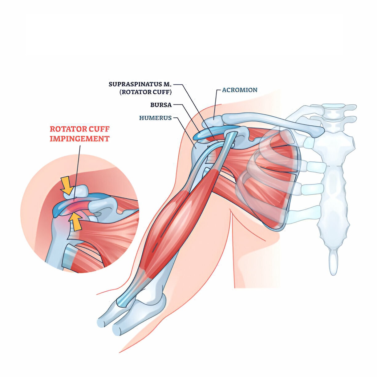 Bone spurs: As we age, bone spurs (overgrowth of bone) often develop on acromian bone eggs. When we raise our arms, the spurs rotator rubs on the cuff tendon. This condition is called the effect of the shoulder, and over time will weaken the tendon and make it more likely to tear.