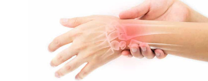 Fractures: Breaks in the carpal bones, radius, or ulna, typically caused by falls or accidents.